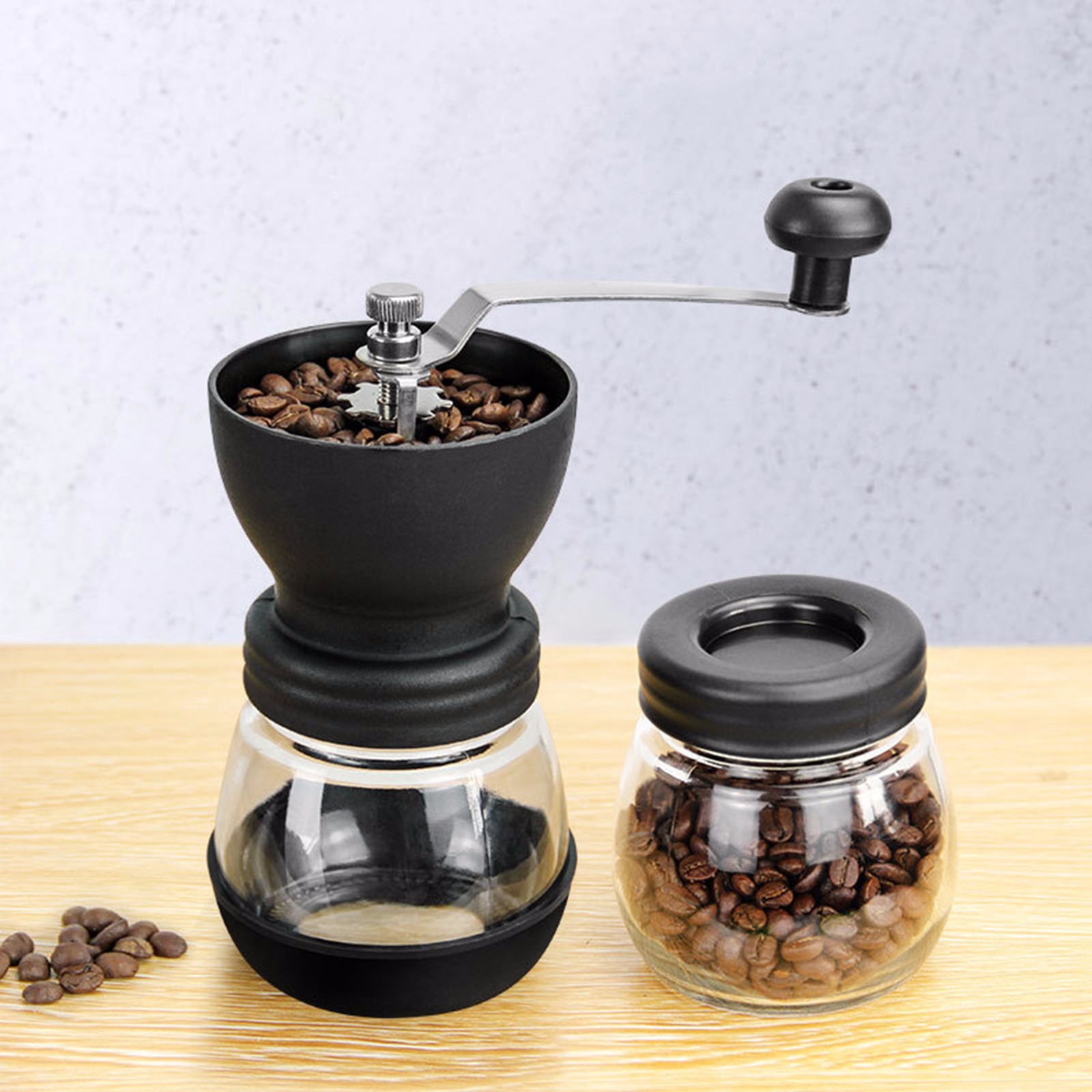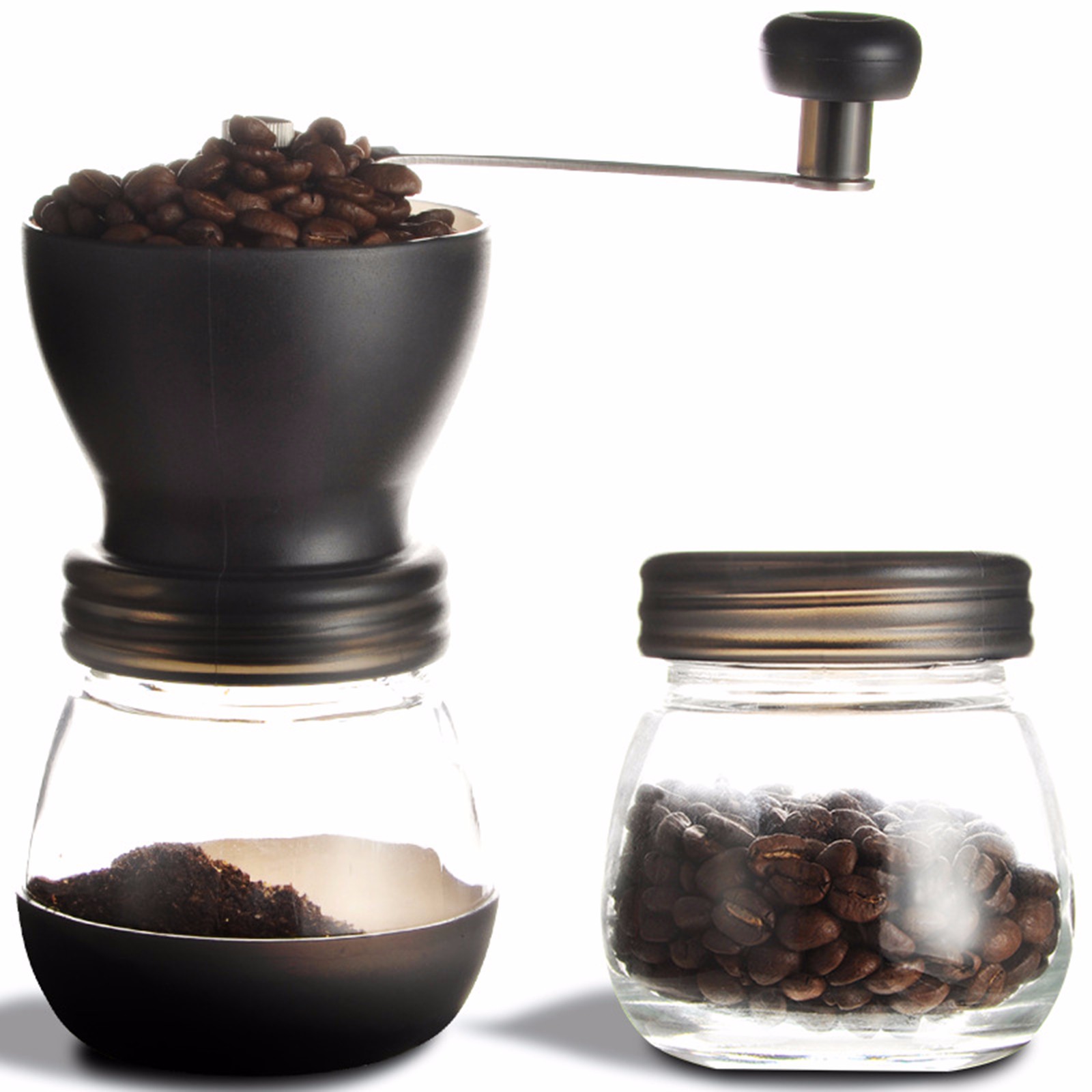 Manual Coffee Grinder - Hand Crank Coffee Grinder with Travel Jar - Coffee Bean Grinder