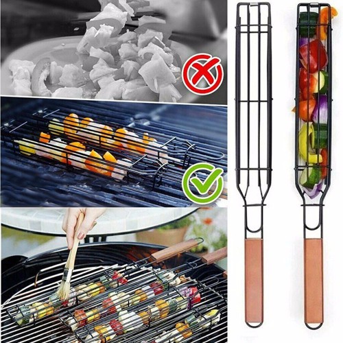 【Scope of application】 Barbecue basket is widely used in barbecue parties, picnics, camping, small restaurants, etc. It can help you fix the food pieces together and heat them evenly on the grill.